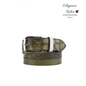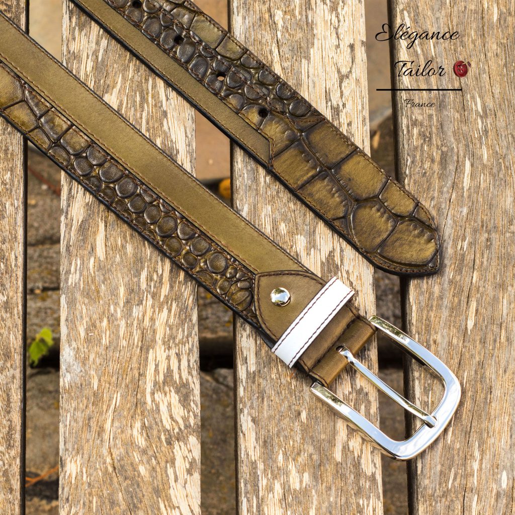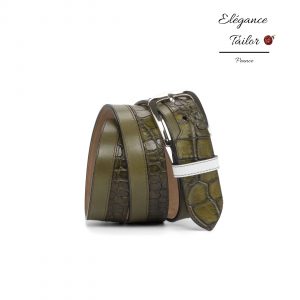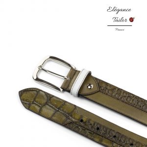Ceinture marseillaise veau box blanc + veau peint olive + croco peint olive