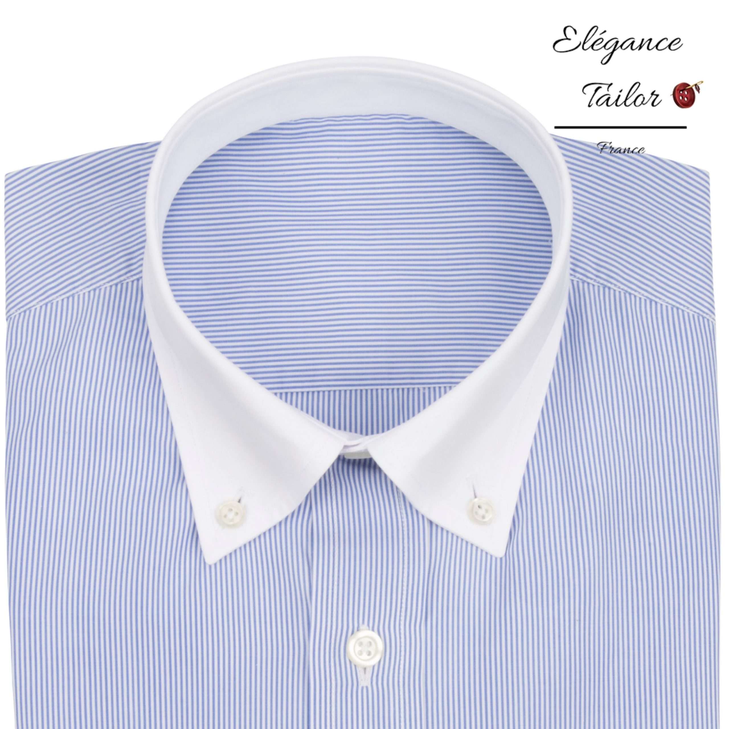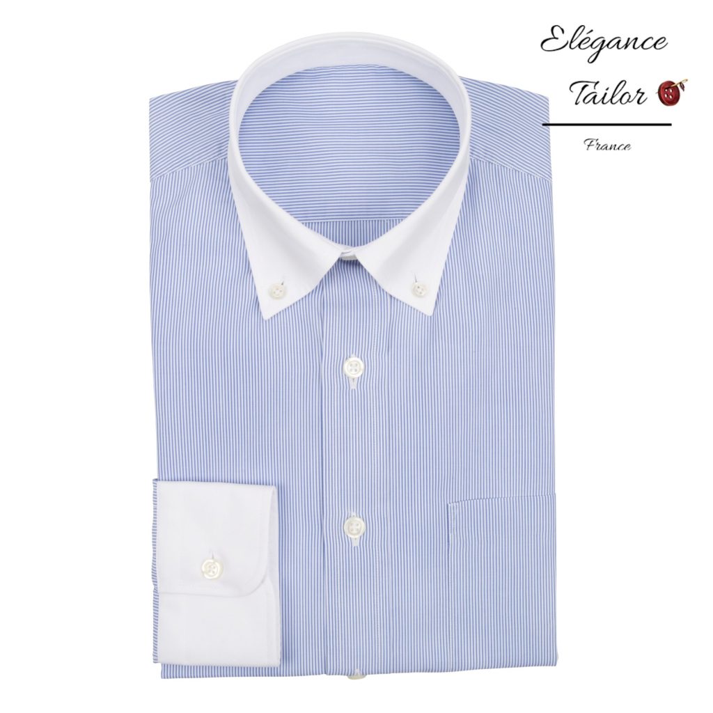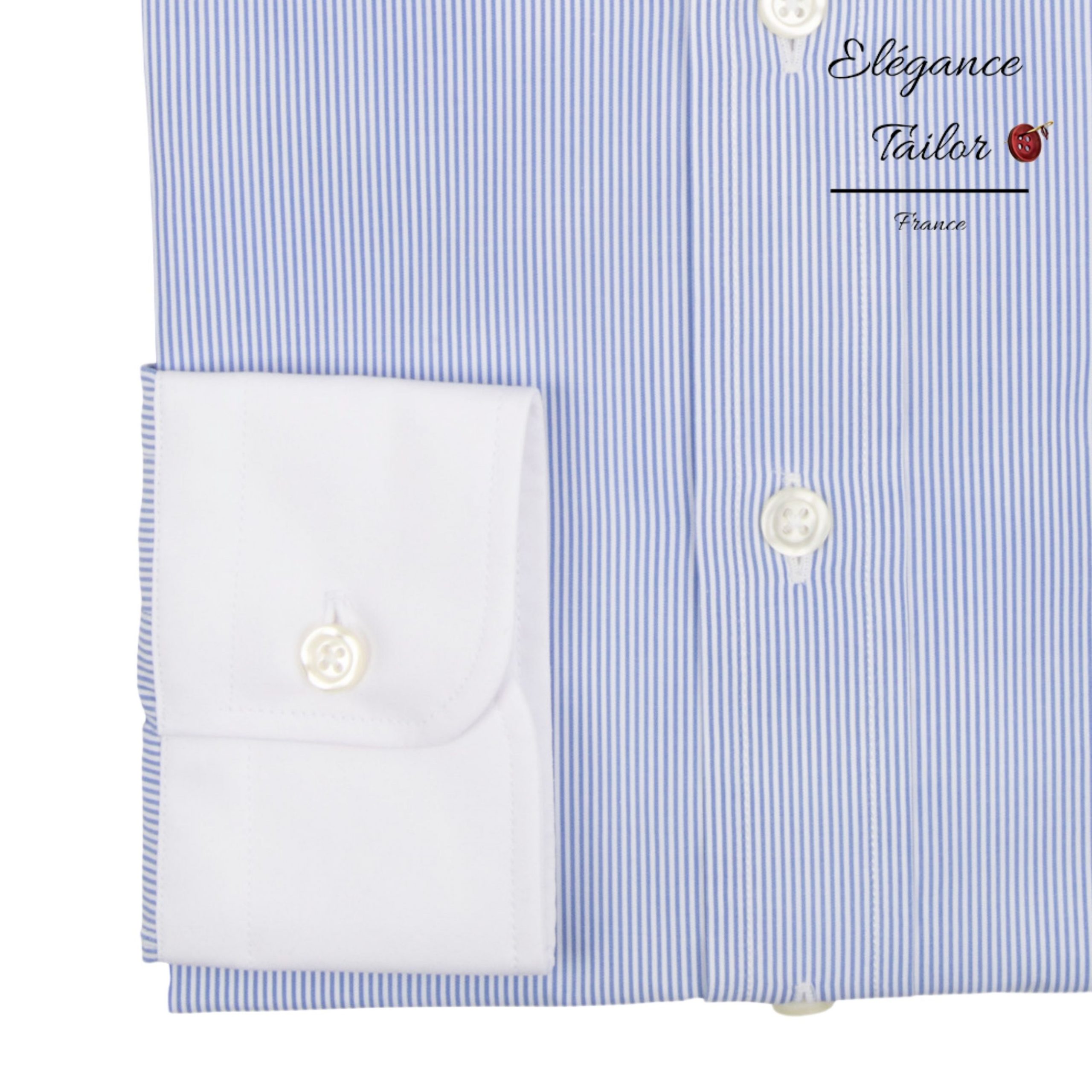 Ce modèle de chemise à rayures verticales et étroites de couleur bleue, accentué par le col et les poignets en coton blanc épais, complétera parfaitement un costume de mariage ou un costume pour un événement important.