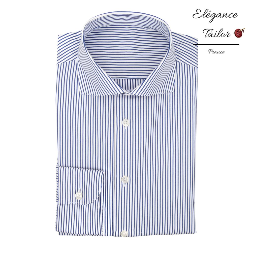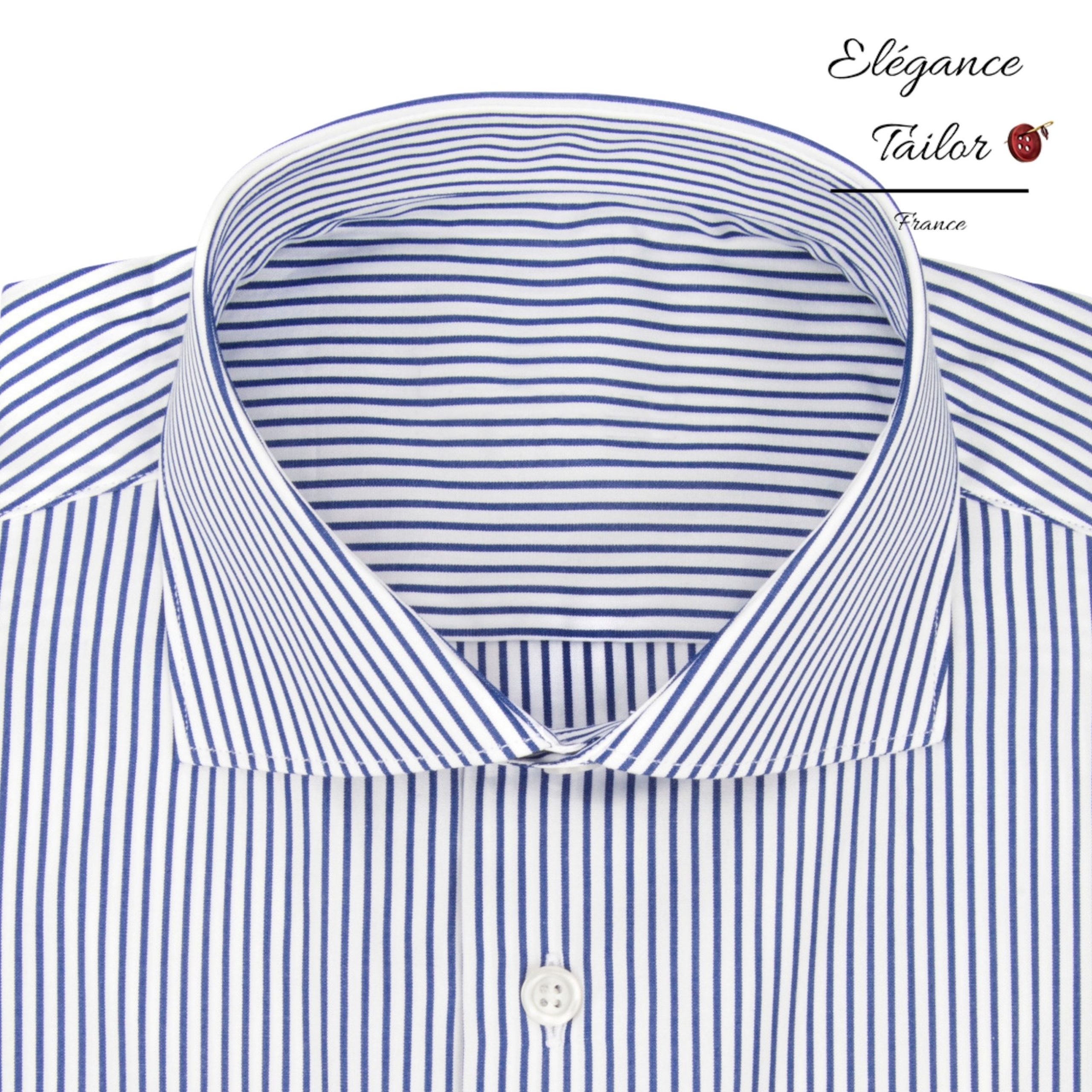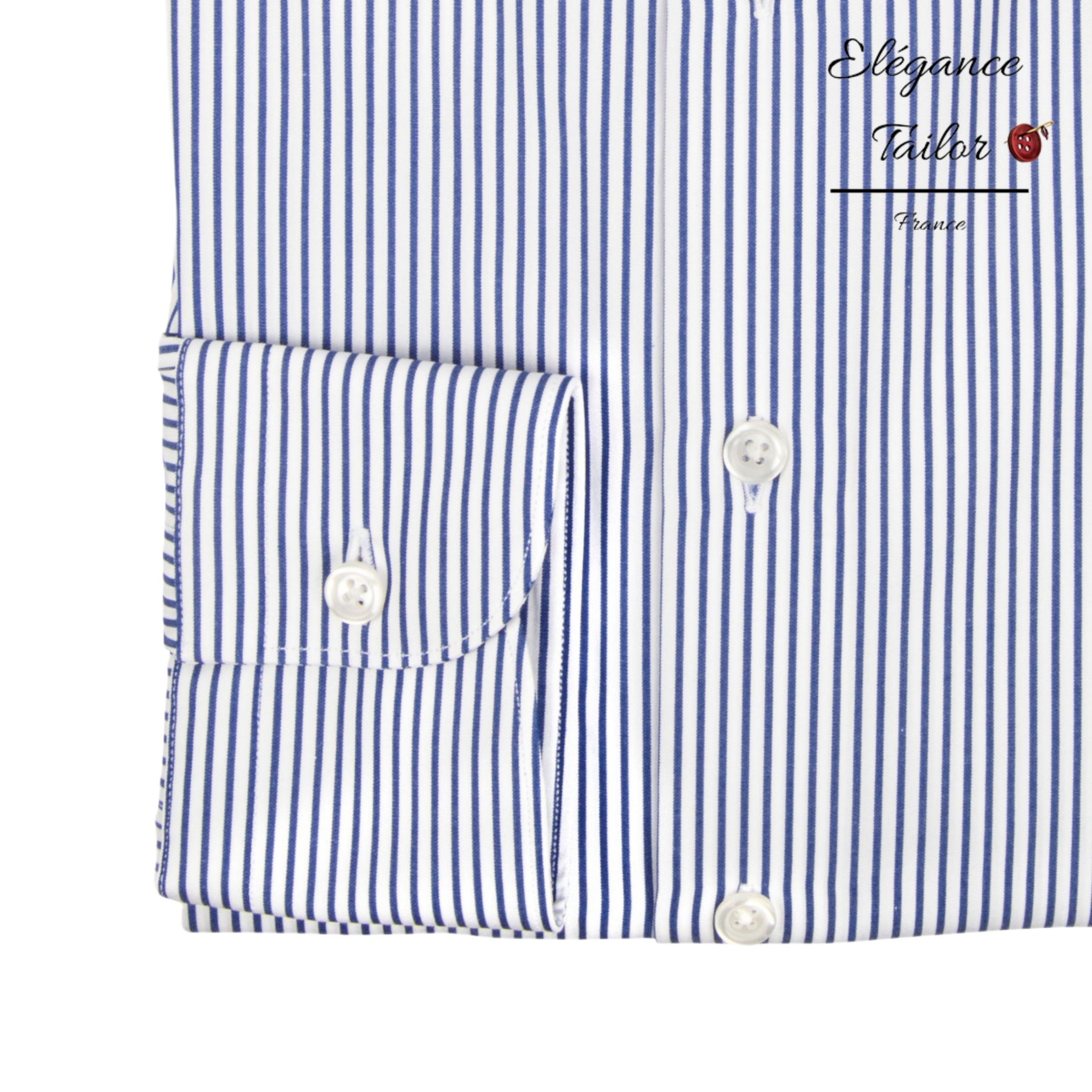Chemise bureau à col italien et à rayures bleus Modèle 5102