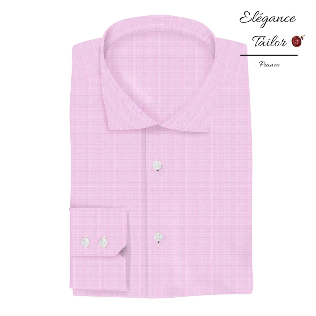 Chemise rose à carreaux à col col italien exécutive Modèle 5163