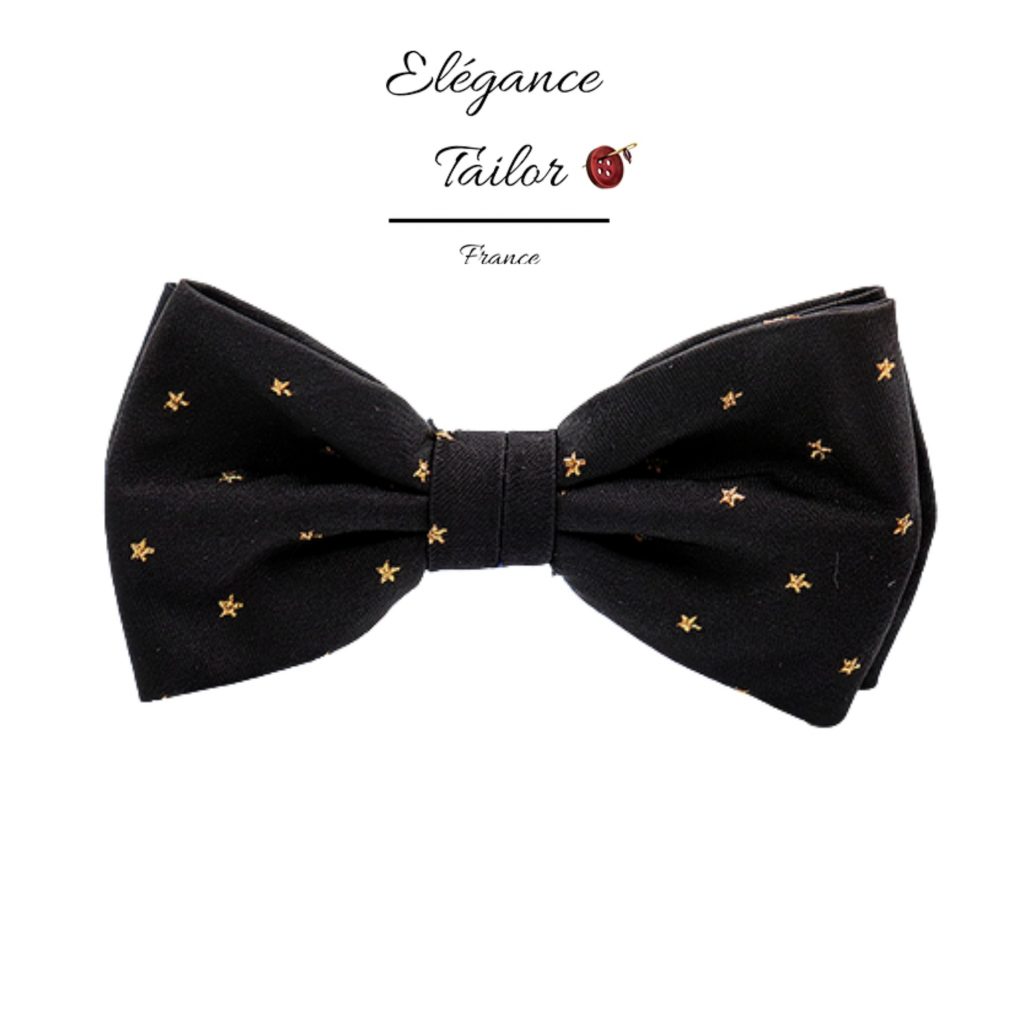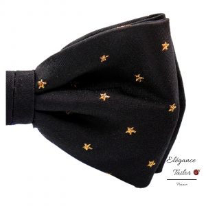 Nœud Papillon Noire Soie ornée d’étoiles d’or