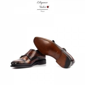 Patine artisanale: La technique utilisée pour réaliser cette œuvre est connue sous le nom de «Anticatura», qui est le mot italien pour la finition antique. C’est une spécialité des maestro cordonniers italiens et français. Confiée aux mains de l’ancien finisseur, la partie supérieure de la chaussure devient une œuvre d’art. La méthode Anticatura est une procédure de teinture à la main du cuir. Il faut environ 8 à 10 heures de travail par paire pour créer une patine complètement unique avec un effet vieilli.